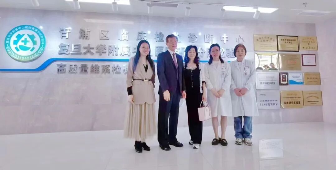 蔡宗仁会长与复旦大学附属中山医院青浦分院检验科主任龚倩教授、副主任王金金教授、生化组组长徐然教授智能建设创新团队交流合影